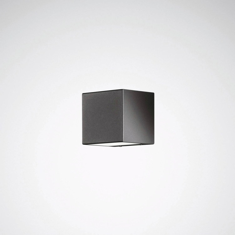 Kubische, dekorative LED-Wandleuchte mit Schutzart IP65. Abschlussscheibe aus gehärtetem, hochtransparenten Glas. Mit zwei Lichtaustrittsbereichen, direkt-indirekt strahlend. Ganzheitlich auch im Gebäudeinneren einsetzbar. Anbauleuchte für die Wandmontage. Befestigung der Leuchte mittels einer Montageplatte aus Aluminiumguss. Spiegeloptik aus lichttechnisch hocheffizientem Aluminium. Mit zwei Lichtaustrittsöffnungen. Mit direkt-indirekt strahlender Lichtstärkeverteilung. Mit asymmetrisch mittelbreit strahlender Lichtstärkeverteilung. Bemessungslichtstrom 100 lm, Bemessungsleistung 6,00 W, Leuchten-Lichtausbeute 17 lm/W. Lichtfarbe warmweiß, ähnlichste Farbtemperatur (CCT) 3000 K, allgemeiner Farbwiedergabeindex (CRI) Ra > 80. Farborttoleranz (initial MacAdam) ≤ 3 SDCM. Mittlere Bemessungslebensdauer L80(tq 25 °C) = 50.000 h. Leuchtenkörper aus Aluminium-Druckguss. Leuchtenkörper anodisiert, grundiert und pulverbeschichtet. Farbe anthrazit, ähnlich DB 703. (DB 703). Maße (L x B): 100 mm x 100 mm, Leuchtenhöhe 100 mm. Auf Anfrage kann der Leuchtenkörper ohne Mehrkosten in nachfolgenden Farben ausgeführt werden: Schwarz texturisiert (Akzo Nobel 8118669, ähnlich RAL 9005), Weiß texturisiert (Akzo Nobel 8158870, ähnlich RAL 9016), Grau texturisiert (Akzo Nobel 8129595, ähnlich RAL 9006). Weitere Farbvarianten nach RAL oder DB Farbcode sind auf Anfrage gegen Mehrpreis möglich. Schutzklasse (EN 61140): I, Schutzart (DIN EN 60529): IP65, Stoßfestigkeitsgrad nach IEC 62262: IK06. Gewicht: 0,8 kg. Mit elektronischem Betriebsgerät, schaltbar. Das Betriebsgerät ist entsprechend der Ökodesign-Anforderungen (VO (EU) 2019/2020) austauschbar. Stoßspannungsfestigkeit Differential Mode / Common Mode: 1 kV / 2 kV. Das Produkt erfüllt die grundlegenden Anforderungen der anwendbaren EU-Richtlinien und des Produktsicherheitsgesetzes und trägt die CE-Kennzeichnung.