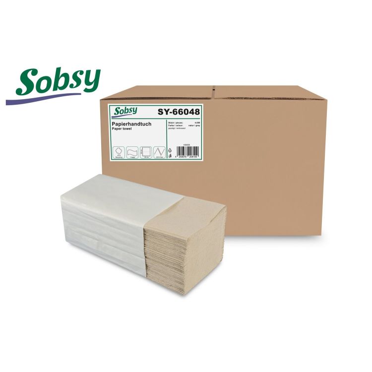 Papierhandtuch grün Sobsy, 1-lagig, V-Falz, 25 x 20 cm, Recycling, 4.000 Stück.