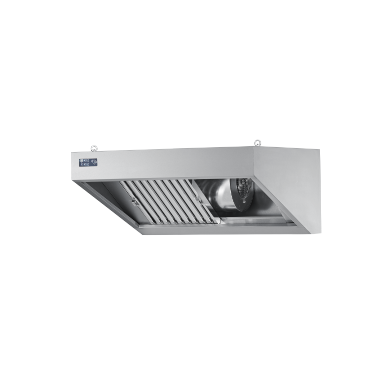 WANDHAUBE MIT VENTILATOR. Aus Edelstahl, mit Ventilator, analogen Regler, Beleuchtung, ringsumlaufender Fettsammelrinne mit Fettablasshahn und Flammschutzfilter Typ B 400x500x20 mm aus Edelstahl. Geeignet zur Aufnahme von Flammschutzfilter mit 40 mm Stärke. Mit Abluft-Ausschnitt. Abluft-Ausschnitt 210x240 mm - Ventilator 180 Watt. Bei der Planung von Projekten bzw. vor dem Kauf und Einbau von Dunstabzugshauben sind die Vorschriften VDI 2052 und DIN 18869-5 zu beachten! Beleuchtung 1 x 40 Watt. Anzahl Flammschutzfilter 3. Luftleistung 1620 m³/h. Abmessungen unverpackt (LxTxH) 1800 x900 x 450 mm.