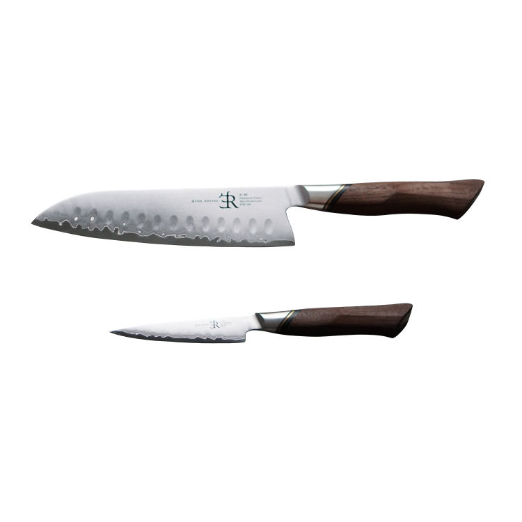 Entworfen, damit Sie in der Küche eins mit dem Messer werden. Der Kern der Klinge ist ein Aus-10 Stahl und hat eine Härte von 60HRC. Die anderen Lager sind aus rostfreiem Stahl 316/316 L und wurden zusammen vakuumbehandelt. Dies bedeutet, dass die Schärfe eine lange Zeit mit einfacher Messerpflege erhalten bleibt. Der Griff ist aus Walnussholz und Messing gefertigt.
