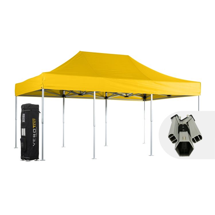 Professionelles Alu Faltzelt 4x6m mit Dach. Für lange und häufige Verwendung. Extrem stabil, mit ergonomischem, reibungslosem Aufbau ohne Bücken. 100% wasserdicht. Druck, Seitenteile, Licht etc verfügbar. Das vermutlich stabilste Zeltgestell am Markt. Extrem starke Bauweise hält Wind und Wetter locker stand. Trotzdem einfach und reibungslos aufzustellen. Gerader Stand mit gut gespanntem Dach. Professionelle Erscheinung zB als Marktzelt, Gastgartenzelt, Cateringzelt, Barzelt, Verkaufszelt, Lagerzelt. 20 Jahre Forschung und Erfahrung. Härtetest Vermietung: Überlebensdauer eines Luxea Faltzelt (4x4) mehr als 10 Jahre. Aufbau mit dem ergonomischen Einrastsystem. Fingerschonende Druckköpfe auf Komforthöhe, 3-fach höhenverstellbar. Durch die Höhe und die Kraftwirkung nach außen wird der Aufbau aus der Körpermitte, ohne wesentliches Bücken, möglich. Aufbau zu zweit möglich, glatter Untergrund (zB Asphalt) hilfreich. Zeltgestell aus hochwertigem, eloxiertem Aluminium mit Speziallegierung und hohem Härtegrad - noch wetterbeständiger und robuster gegen Kratzer. 50mm Hexagon Profile mit doppelter Nutung, aussen und innen. Wandstärke 2,5mm. Verbinder aus Alu-Druckguss. Separate Form für jedes Teil, daher dickes beinahe unzerbrechliches Material. Ideal planenschonend gerundete Kanten. Gleitteile aus Kunststoff zwischen Verbindern und Profilen, sowie zwischen sämtlichen Aluteilen. Niemals Alu auf Alu. Daher einfacher Aufbau. Verschraubt mit M8 Spezialschrauben - Scheren bewegen sich auf glatter Oberfläche. Einfache Reparatur. Ersatzteile sind jederzeit verfügbar. Dach perfekt an das Gestell angepasst - professioneller Auftritt, besserer Wasserablauf. Dach und Seitenteile aus dem Premium Material Supratex 600D. Aufbau aus fünf Schichten, unter anderem PU-Beschichtung und UV-Lackierung 50+. Durchgefärbter Faden – lange Farbechtheit. Hochwertige Verarbeitung, Naht-Versiegelung mit Spezialband. Absolut wasserdicht. B1 brandhemmend. Abwischbar. Scheuerschutz an allen Reibungspunkten, Abspannringe, breiter Klett zur Befestigung am Gestell bzw der Seitenteile. Lieferumfang inklusive Tragetasche Premium+ für Faltpavillon inkl. Dach. Einfache Montage ohne Anheben des Faltzeltes. Kein Herausrutschen beim Transport. Robuster Stoff mit dicken Gummikanten. Optimale Lastverteilung durch umlaufende Gurten. Bequeme, gummierte Griffe. Abspannungs- und Verankerungsset mit Ankern und Gurten. Zubehör: Gewichte aus Stahl, mit Sand oder Wasser, Verankerungslösungen. Seitenteile, Beach-Flags, helle Beleuchtung, die immer am Gestell bleiben kann uvm. Zelt bedrucken mit Logo oder Foto beidseitig vollflächig möglich. Gestell: Aluminium mit Speziallegierung, reibungsloser Aufbau - 4 Standbeine - Durchgangshöhe 2-2,35 m - Hexagon Profil 50mm; 2,5mm Wandstärke - Nutung innen und außen für mehr Stabilität - Speziallegierung (AIMgSi0,5-F22)mit extrem hohem Härtegrad(>15) - Verbinder aus Aluminium Druckguss - verschraubt mit M8 Spezialschrauben - Einrastsystem mit rotem Druckknopf - ergonomischer Aufbau ohne Bücken - Alu-Fußplatte, verschweißt - Scherenprofil 18x30, Wandstärke 2mm - Scheren oval, genutet, mit 2 Stützrippen - Ersatzteile erhältlich Dach: Premium Material Supratex, Polyester 600D - Aufbau aus 5 Schichten, inkl. PU Beschichtung - 100% wasserdicht - versiegelte Nähte - UV stabilisiert 50+ - brandhemmend nach Norm EN13501-1, Klasse B-s1,d0 - abwischbar - beidseitig bedruckbar