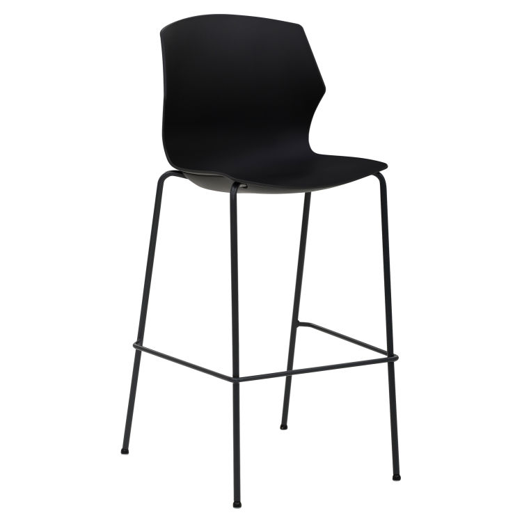 Pflegeleichter Barhocker mit 4-Fuß-Gestell anthrazit, hochwertiger Kunststoffschale anthrazit mit hohem Sitzkomfort, Sitzhöhe 75 cm, 2 Stück/Karton.