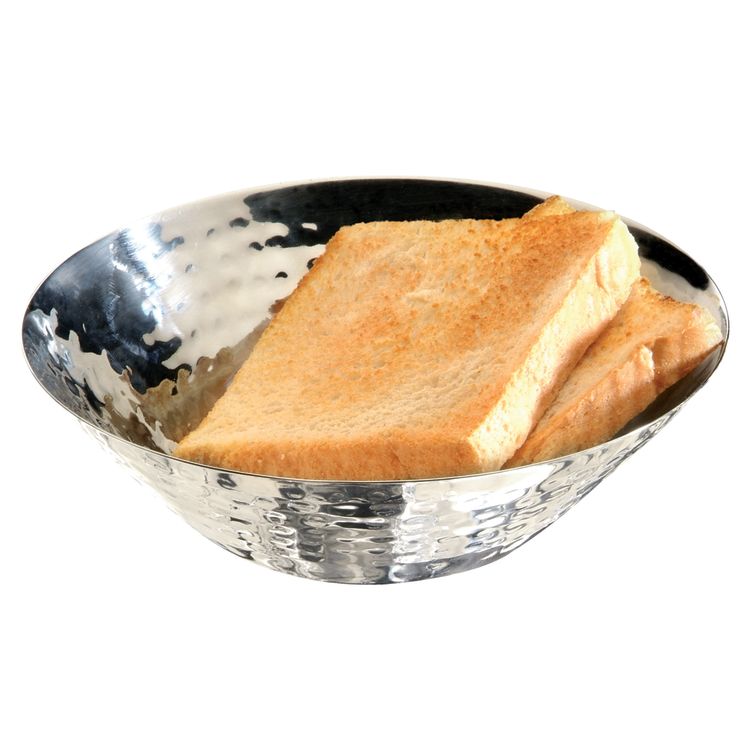 hochglanzpoliertDie Brot- und Obstschale von APS überzeugt mit einer stylischer edelstählernen Hammerschlag Optik und kann äußerst vielseitig eingesetzt werden.