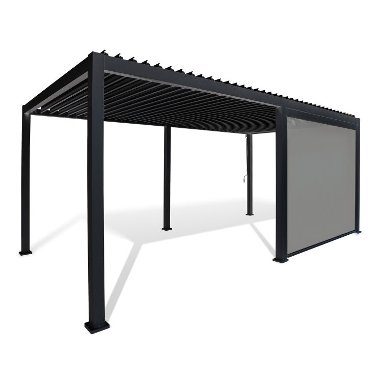 Passender Seitenrollo zu den Terrassenüberdachungen Cadiz. Der Seitenrollo kann sehr einfach montiert werden und lässt sich in der Höhe verstellen. Perfekter Schutz vor Wind und Wetter.