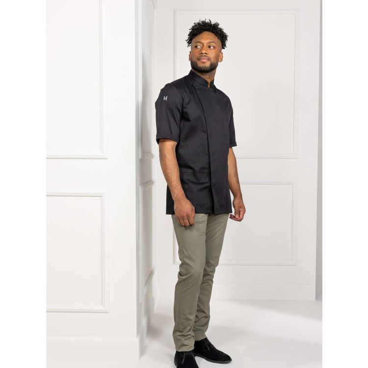 Kochjacke Melvin ist eine klassische Jacke mit kurzen Ärmeln und moderner Passform. Innovative Exzellenz verpackt in einem klassischen Produkt. Hohe Qualität mit Blick auf Nachhaltigkeit, denn diese Kochjacke hat eine extreme Lebensdauer. Materialzusammensetzung: 65% Polyethylen 35% Baumwolle