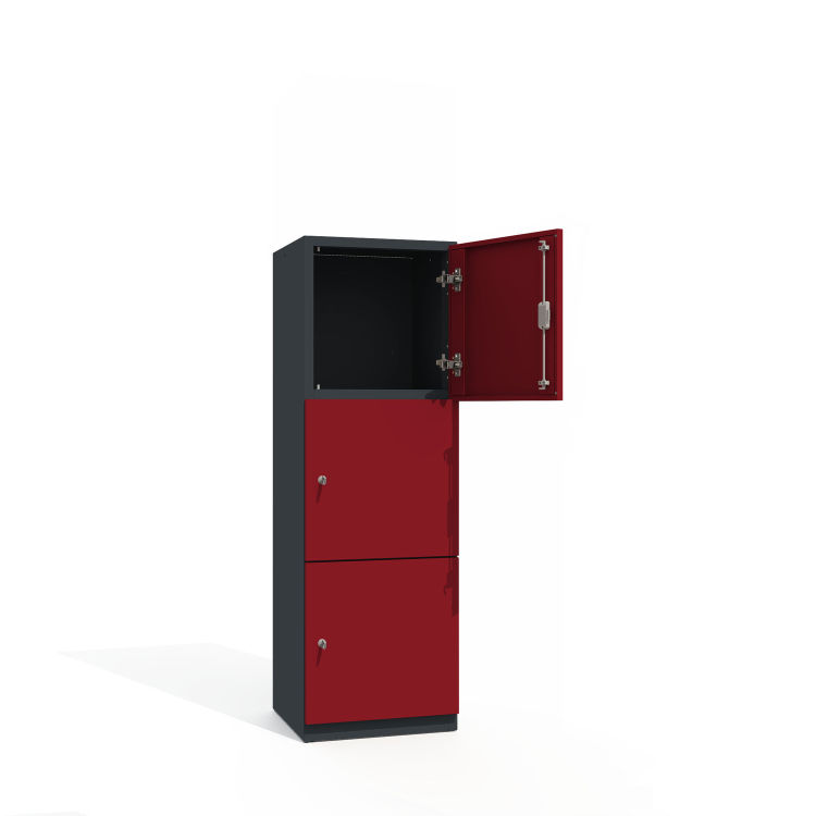 Mit dem Büroschrank aus der rotstahl®-PREMIUM-Serie erhalten Sie ein hochwertiges Produkt, das seinen praktischen Nutzen mit einer ansprechenden Optik vereint. Seine drei separat verschließbaren Fächer bieten großzügigen Stauraum für Bücher, Dokumente, Ordner und sonstige Arbeitsmaterialien.