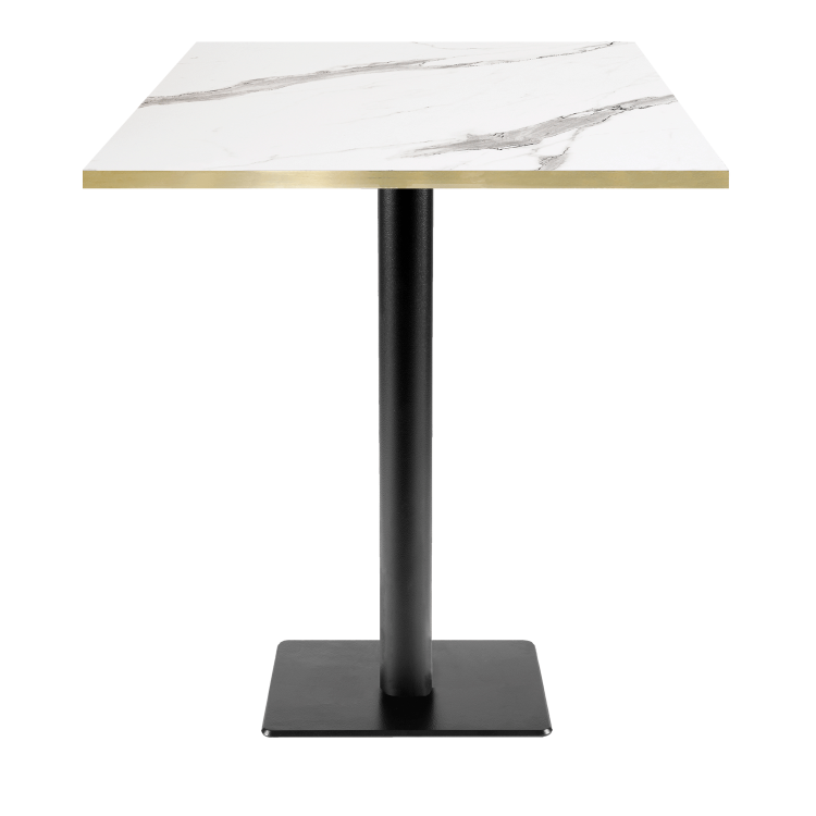 • Tischplatte aus wasserfester Spanplatte mit Laminatfurnier und PVC-Kanten messingfarben