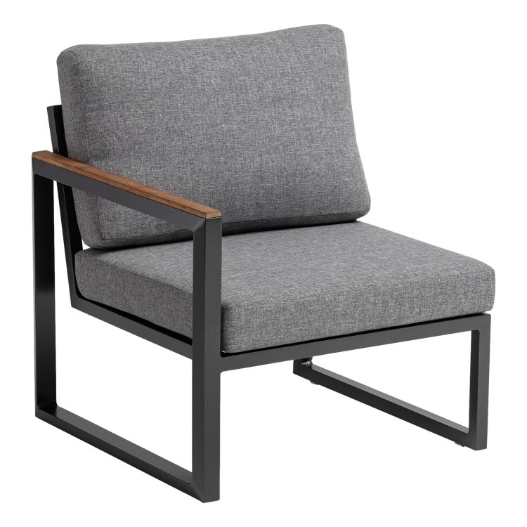 OCEAN SKID besticht durch ihre variable Gestaltung, bei der jeder seine passende Variante erhält.Solides, formschönes Aluminium-Gestell mit Armlehnen aus Aluminium oder Onlay-Armlehne aus 100% FSC®- zertifiziertem Teak-Holz, kombiniert mit hellgrau-melierten Sitz- und Rückenkissen aus UV-beständigem Olefin-Stoff.