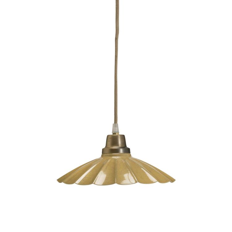 Kleine Hängelampe Ester aus Metall mit einer Emaille-Oberfläche, die Marmor imitiert. Jedes Stück ist ein Unikat. Vintage-Charakter durch den Zusatz von messingfarbenem Metall. Ausführung in Terrakotta. Durchmesser am Boden 24 cm, Höhe 12 cm. 3,5 m leinenbeige Textilkabel mit Aufhängehaken und flachem EU-Stecker. E27-Fassung, max. 25W. IP20. Leuchtmittel nicht enthalten.
