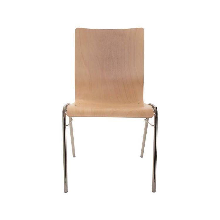 Dieser Besucherstuhl überzeugt durch sein schlichtes Design und seinen hohen Sitzkomfort. Der Stuhl für Wartezimmer, Besprechungs- und Konferenzräume hat eine Sitzschale aus Buchenholz und ein verchromtes Stahlgestell, das viel Stabilität gewährleistet. Durch die Lackierung mit Wasserlack nach B1 ist der Besucherstuhl schwer entflammbar und beständig gegen Desinfektionsmittel. Bis zu 12 Stühle können platzsparend übereinander gestapelt werden.
