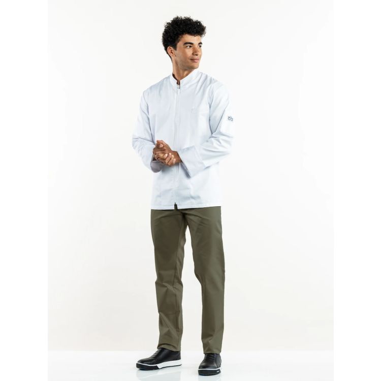 Die Regular Fit-Hose hat einen geraden Beinverlauf und sitzt komfortabel auf der Hüfte. Ein flottes und modernes Modell. Die Kochhose ist im Rücken mit einem Elastikeinsatz versehen, was zusätzlichen Komfort bietet. Zudem verfügt die Hose über Gürtelschlaufen und einen knopf. Die Oliva bildet eine perfekte neutrale Basis.