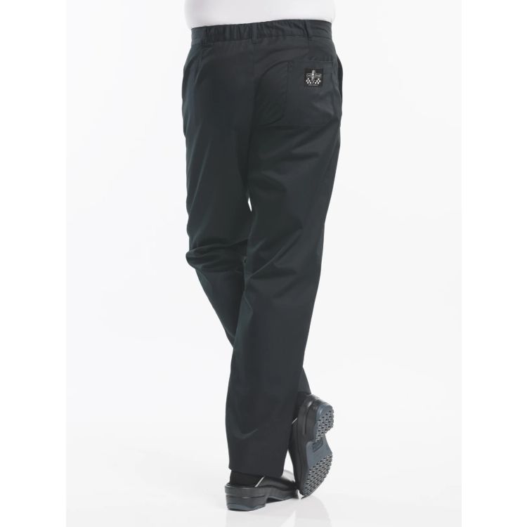 Die Regular Fit-Hose hat einen geraden Beinverlauf und sitzt komfortabel auf der Hüfte. Ein flottes und modernes Modell. Die Kochhose ist im Rücken mit einem Elastikeinsatz versehen, was zusätzlichen Komfort bietet. Zudem verfügt die Hose über Gürtelschlaufen und einen knopf.Die Nero bildet eine perfekte neutrale Basis.