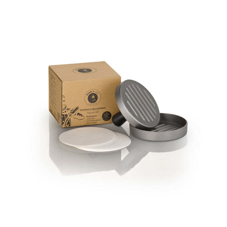 Die Burgerpresse von Buddy’s BBQ ist ein funktionales Werkzeug für die gleichmäßige und professionelle Herstellung von Burger-Patties. Gefertigt aus robustem Aluminium überzeugt sie durch Stabilität und Langlebigkeit im regelmäßigen Einsatz. Der ergonomisch geformte Griff ermöglicht eine komfortable Handhabung und sorgt für einen gleichmäßigen Druck beim Formen. So entstehen kompakte, formstabile Patties mit einheitlicher Struktur – ideal für Grill, Pfanne oder BBQ-Station. Die mitgelieferten Papierzuschnitte erleichtern das Entnehmen und Portionieren sowie die hygienische Verarbeitung. Die Presse wird demontiert geliefert und lässt sich schnell und unkompliziert montieren – perfekt für Gastronomie, Catering oder ambitionierte Grillfans.