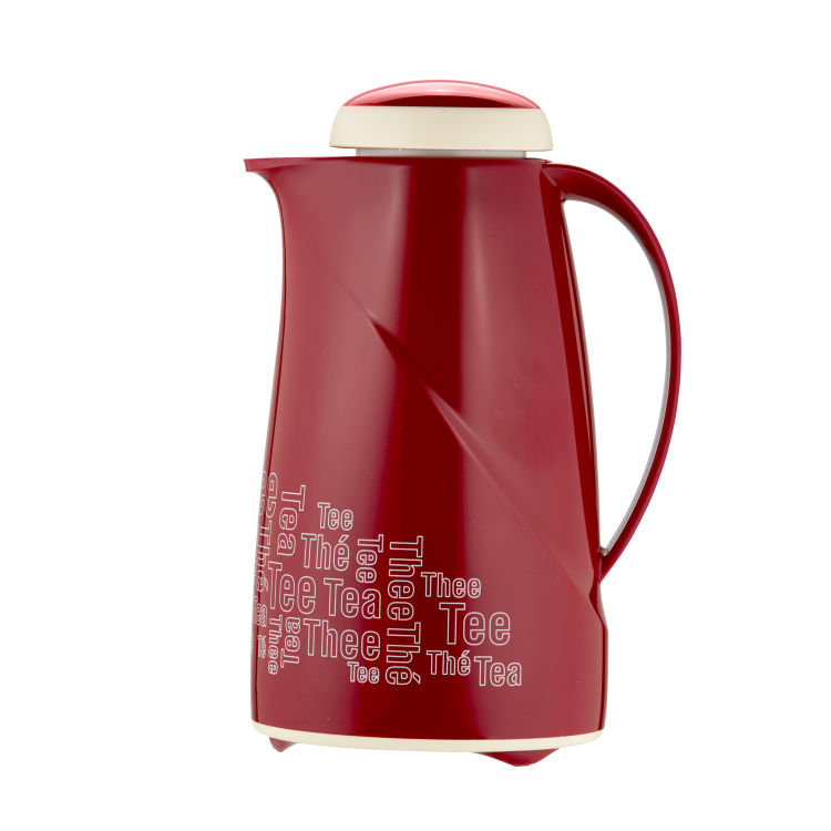 Helios Kunststoff-Isolierkanne mit ergonomischen Drehverschluss. Profiausführung. Bedruckt mit Tea Time-Dekor. Sehr gute Warmhaltung durch vakuumierten und versilberten Q100 Qualitätsglaseinsatz. Das Modell ist durch die Santoprene-Versiegelung spülmaschinenfest. Inhalt ca. 1,0 l. Verpackung im Einzelkarton.