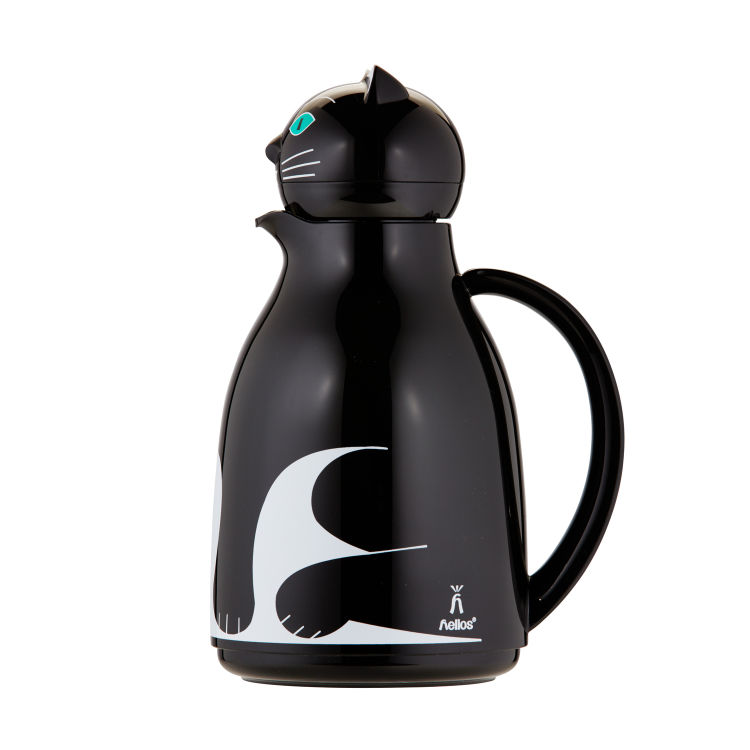 Helios Kunststoff-Isolierkanne mit Drehverschluss. Kunststoff-Mantel und Drehverschluss im Katzen-Design. Sehr gute Warmhaltung durch vakuumierten und versilberten Q100 Qualitätsglaseinsatz. Inhalt ca. 1,0 l. Verpackung im Einzelkarton.