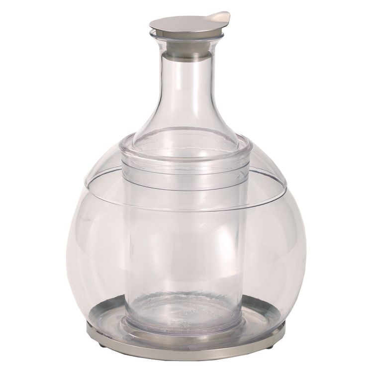 CARAFINE 'Crystal', Mit Crasheis gefüllter Standfuß für eine starke Kühlung und für ein besonderes optisches Highlight. Standfuß und Standfußhaube aus Kunststoff (Tritan®), Kunststoff-Karaffe (Tritan®) 1,2 Liter mit Edelstahl-Deckel, Edelstahl-Tropfschale