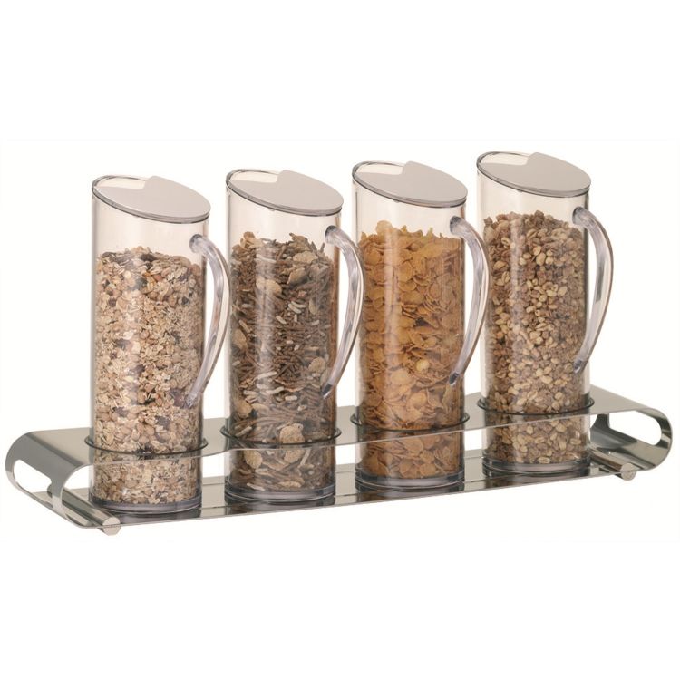 UNISON 'Müsliflöte', Müslipräsentation aus Edelstahl, Kunststoff-Behälter 1,5 Liter (SAN), Edelstahl-Deckel und Edelstahl-Standfuß, inkl. 'Gute-Nacht-Deckel'