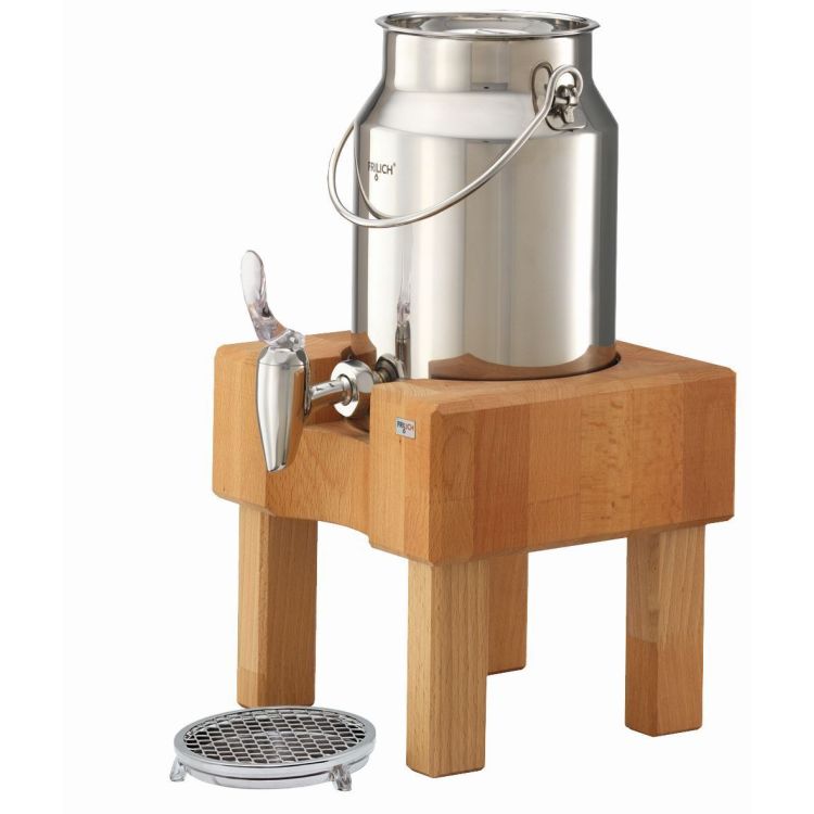 PURE NATURE 'Milchkanne 5 Liter', Standfuß aus Buchenholz (natur) mit Edelstahl-Standfußeinlage, Edelstahl-Behälter, EdelstahlHahn, Edelstahl-Crasheisröhre, Kühlakku, Edelstahl-Tropfschale