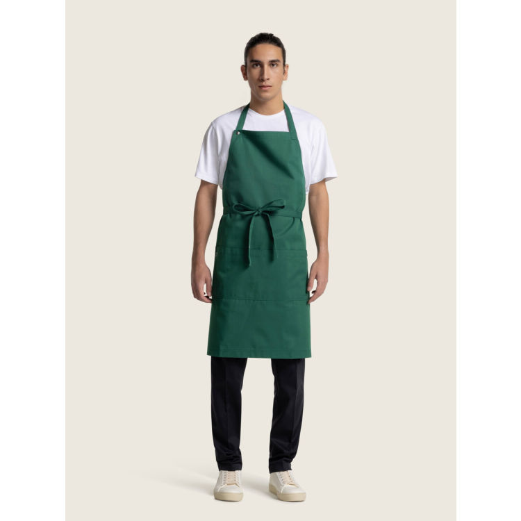 Der perfekte Begleiter für jedes Koch- oder Kellnerabenteuer: Eine stylische Latzschürze mit zwei mittig genähten Hüfttaschen, die genügend Stauraum für alles bietet, das bei der Arbeit schnell zur Hand sein muss. Ein Halter für Hand- oder Poliertuch bietet die perfekte Ergänzung zum Abwischen schmutziger Hände oder Gegenstände. Die Länge des Latzes ist durch drei Druckknöpfe am Nackenband verstellbar. Diese Schürze ist euer täglicher Begleiter in Küche und Service, euer wichtigstes Arbeitswerkzeug. Mit der passenden Schürze seid ihr beim Arbeiten perfekt ausgerüstet und könnt alles schaffen! Let´s change Workwear! Material: Köper aus 63% Polyester (recycelt), 35% Baumwolle (Bio), 2% Polyester, 240 g/m²