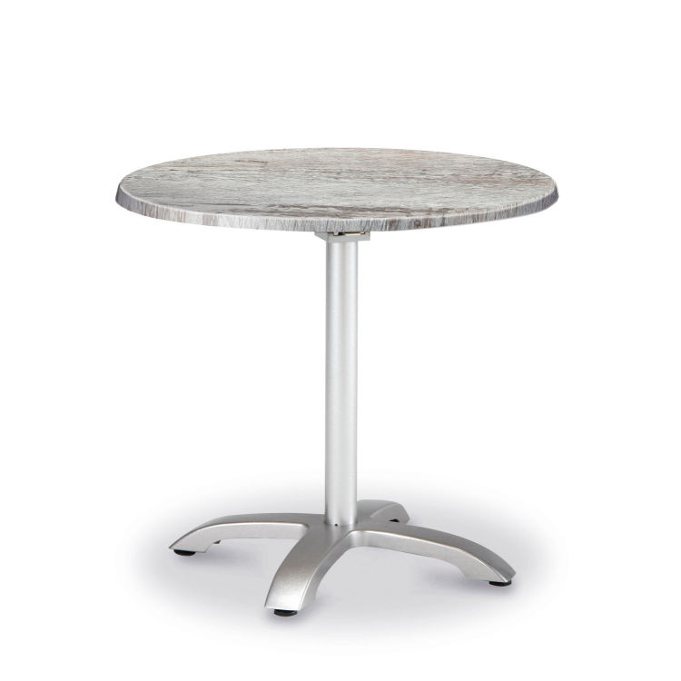 Der Klapptisch Maestro ist ein Blickfang und hebt sich durch das edle Design von üblichen Klapptischen markant ab. Ein optisches Highlight ist das elegante Aluminiumgestell mit seiner seidenmatten, silberfarbenen Beschichtung. Dank der höhenverstellbaren Schrauben kann die optimale Standfestigkeit auf unebenem Boden eingestellt werden. Die extrem strapazierfähige Werzalit-Tischplatte im Montpellier-Dekor hat keine Kanten und Fugen. Die Platte ist unverwüstlich und selbst gegen heiße Töpfe und glühende Zigaretten unempfindlich. Der raffinierte Klappmechanismus mit Sicherheits-Arretierung läßt sich mit nur zwei Fingern bedienen. Die Tischplatte kann somit leicht abgeklappt werden. Der Tisch ist absolut wetterfest und kann die gesamte Gartensaison über im Freien bleiben. Maße: rund 90 cm Ø / Tischhöhe: 73 cm
