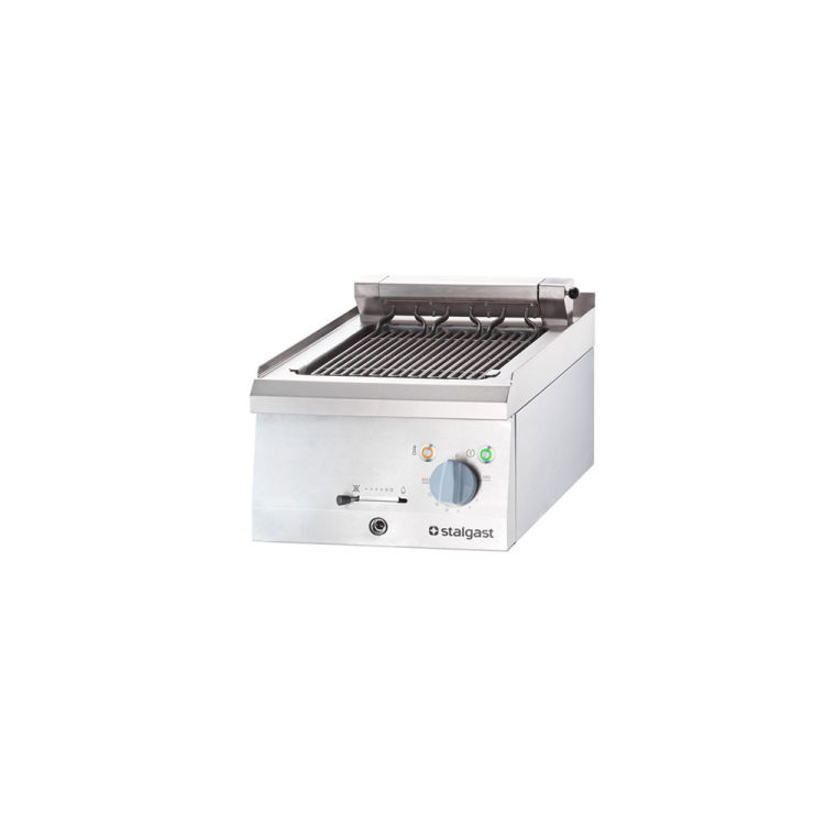 Welcher Grill ist für Sie der Beste?Möchten Sie zartes, saftiges Fleisch? Knackiges Gemüse? Kurze Aufheizzeit? Einfache Handhabung? Leichte Reinigung? Ein kostengünstiges Qualitätsprodukt?Die Antwort: Der Wassergrill der Serie 700 ND aus dem Hause Stalgast!Der Grillrost wird durch die integrierten Heizstäbe direkt und schnell aufgeheizt, die Kontrollleuchten zeigen Ihnen das Ende der Aufheizphase an. Los geht´s! Auf dem abgeflachten Grillrost klebt Ihr Grillgut nicht an. Tropfende Bratflüssigkeiten werden in der gefüllten Wasserwanne aufgefangen und damit Rauchentwicklungen vermieden. Zeitgleich wird das Wasser in der Wanne durch den Grill erwärmt. Der entstehende Wasserdampf geht auf Ihr Grillgut über, wodurch es nicht austrocknet. Als Ergebnis bekommen Sie zartes, saftiges Fleisch, Fisch oder Gemüse.Zur Reinigung: Stecken Sie den Auslaufbogen in den Auslass, öffnen die Verriegelung und die Leerung der Wanne beginnt. Ein einfaches Stecksystem entriegelt den Grillrost und Sie können die komplette Grillfläche aufklappen, sichern und die nun frei zugängliche Wasserwanne problemlos Auswischen. Fertig!Wie alle Geräte der Serie 700 ND ist das Gehäuse aus pflegeleichtem, robustem Edelstahl solide gefertigt. Die Kontrollleuchten, der stufenlos regelbare Knebel sowie die Verriegelung und der Auslass finden sich auf dem schräggestellten Bedienfeld mit lasergravierter, klar lesbarer Beschriftung.Falls Sie einen Unterbau für dieses Tischgerät wünschen, ist das kein Problem. Sie müssen sich nur zwischen den vielfältigen Möglichkeiten entscheiden: Die Serie 700 ND beinhaltet offene oder geschlossene Unterbauten mit und ohne Tür in den unterschiedlichsten Größen, ganz nach Ihren Wünschen. - Edelstahl