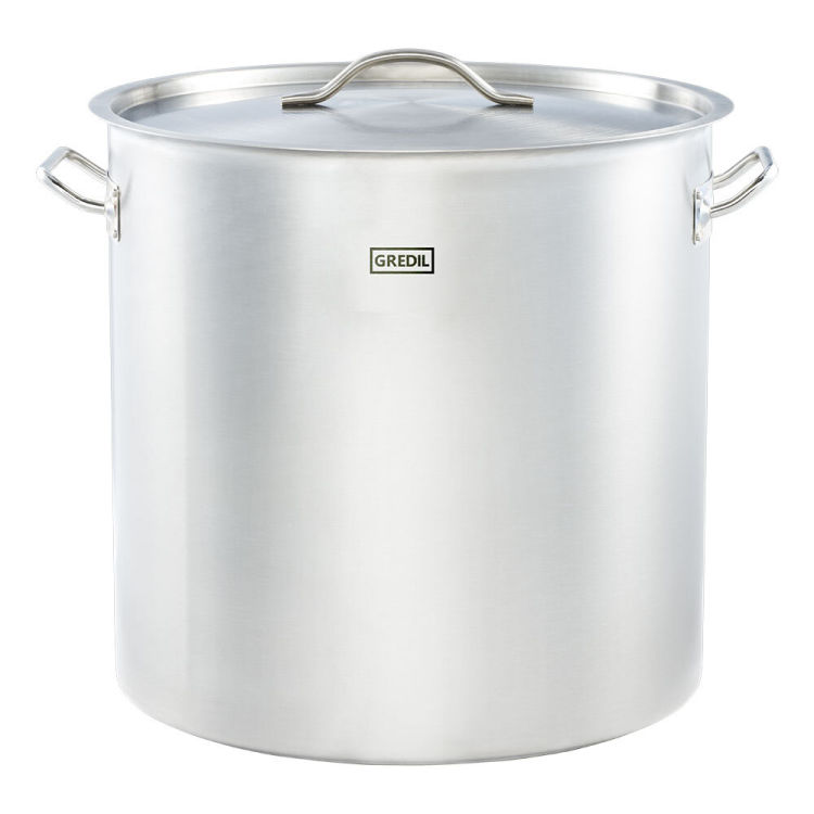 Der Kochtopf aus der Serie Eco von Gredil hat einen gleichmäßig flach auf dem Herd aufliegenden Sandwichboden aus rostfreiem Edelstahl und Aluminium, wodurch die Wärme zuverlässig und gleichmäßig verteilt wird.