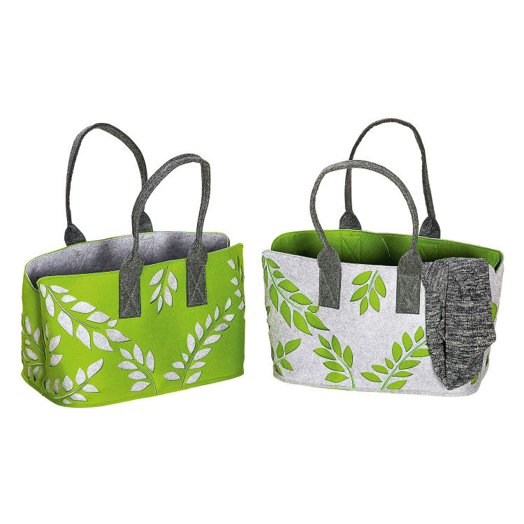 Filz Tasche Blattmosaik mit Tragegriff grün, beige, hellgrau, beige, grün, hellgrau 2fach sortiert