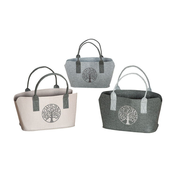 Filz Shoppingtasche Lebensbaum bestickt hellgrau, dunkelgrau, beige 3fach sortiert, Belastbarkeit bis zu 15 kg