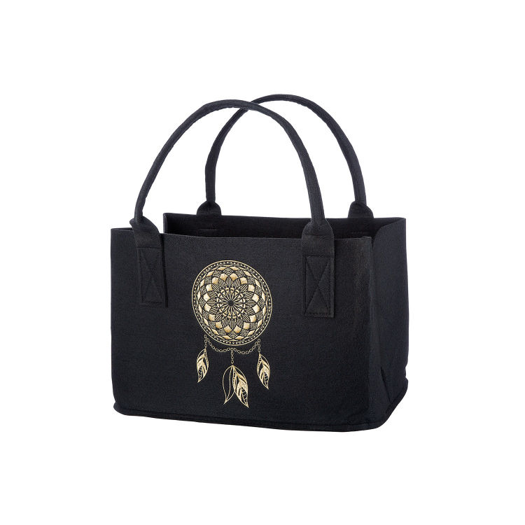 Filz Tasche Traumfänger schwarz, mit besticktem Motiv in goldfarben, Belastbarkeit bis zu 15 kg
