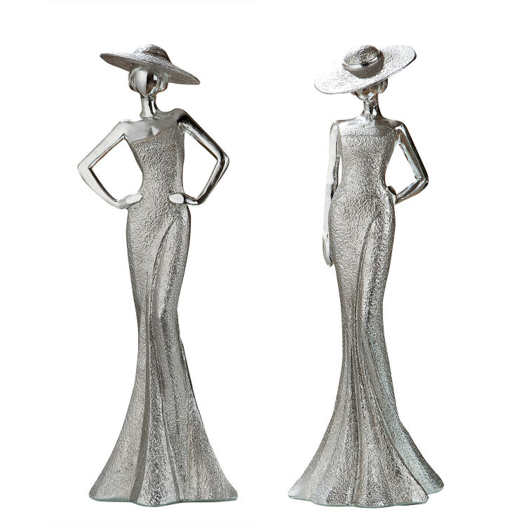 Kunstharz Lady "Diva" Hände in Hüfte silberfarben, electroplated 2fach sortiert