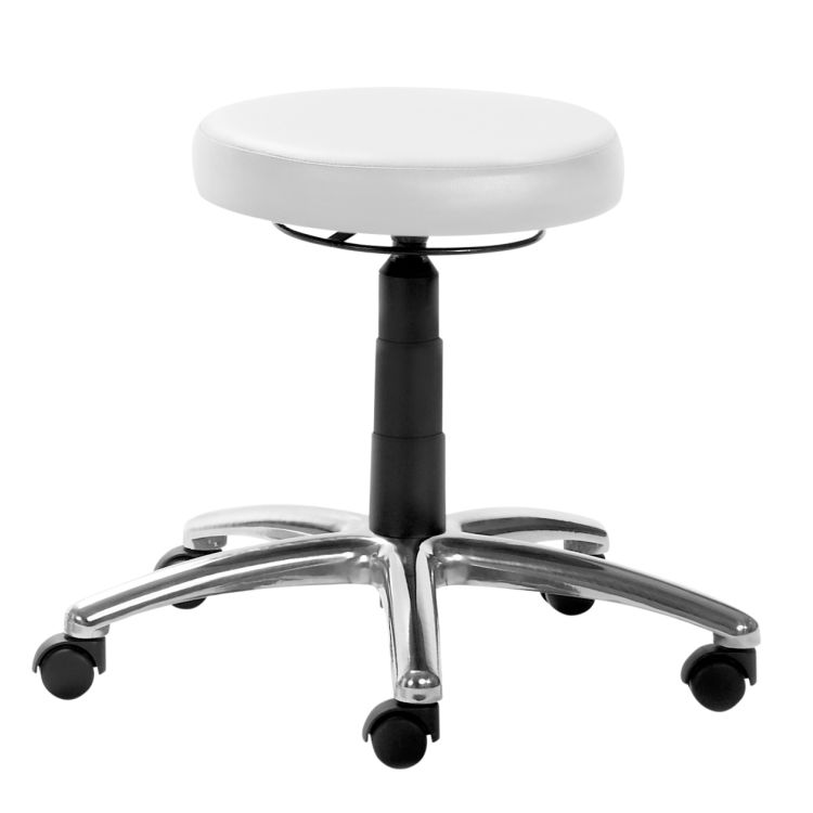 Gestell schwarz, gepolsterter Tellersitz, stufenlose Höhenverstellung per Ringauslösung und Gasfeder, Alu-Fußkreuz poliert, inkl. Rollen für Teppichböden, Sitzhöhe 40 - 51 cm. Kunstleder für höchste Ansprüche im Objektbereich. Äußerst strapazierfähig und robust, schmutzabweisend, desinfizierbar, hygienisch und leicht mit Wasser und Neutralseife zu reinigen. Hautverträglich - angenehm weich. Sehr gute Lichtechtheit. Brandschutzgeprüft nach EN 1021-1 (Zigarettentest), Lichtechtheit: 6 (ISO 105 - B02), Scheuertouren nach Martindale > 50.000, Oeko-Tex® Standard Klasse I.