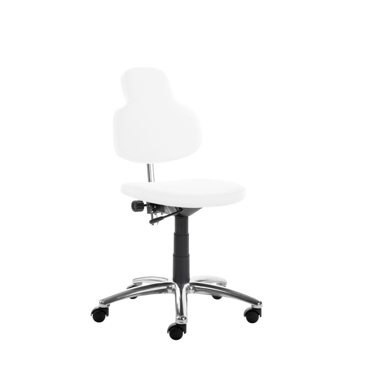 Sitz und Rücken gepolstert, Rücken in Höhe und Neigung variabel verstellbar, Standard-Mechanik und Balg schwarz, stufenlose Höhenverstellung durch Gasfeder, Fußkreuz Alu poliert, inkl. Rollen für Hartböden schwarz, eingetragenes Design, Sitzhöhe 42 - 51 cm. Kunstleder für höchste Ansprüche im Objektbereich. Äußerst strapazierfähig und robust, schmutzabweisend, desinfizierbar, hygienisch und leicht mit Wasser und Neutralseife zu reinigen. Hautverträglich - angenehm weich. Sehr gute Lichtechtheit. Brandschutzgeprüft nach EN 1021-1 (Zigarettentest), Lichtechtheit: 6 (ISO 105 - B02), Scheuertouren nach Martindale > 50.000, Oeko-Tex® Standard Klasse I.