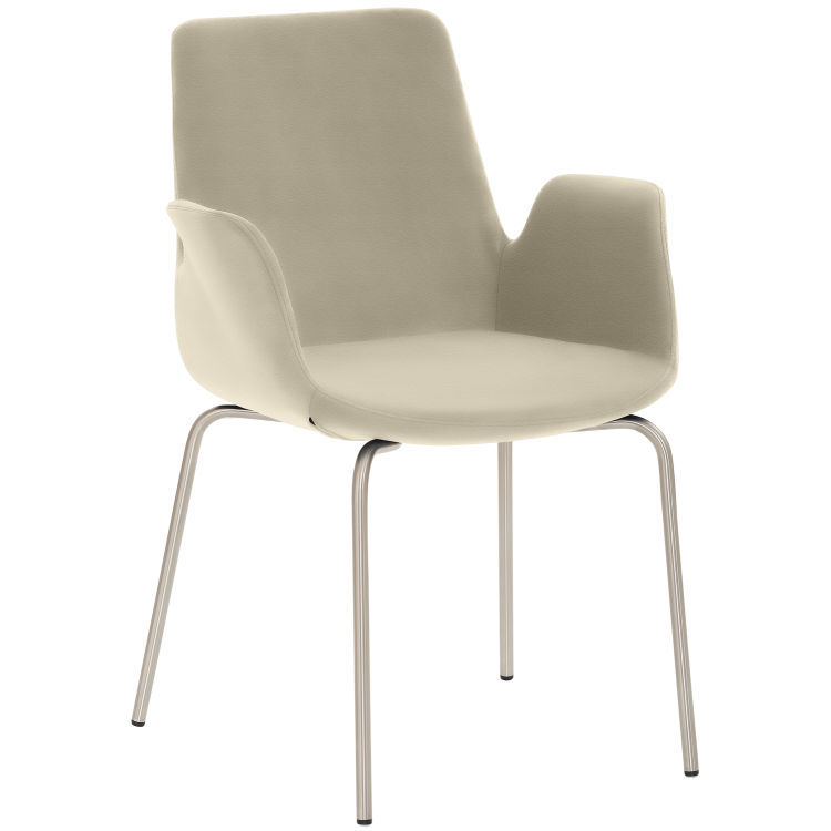 Freischwinger-Gestell, pulverbeschichtet schwarz, mit integrierten Armlehnen, rundum gepolstert, Sitzhöhe 49 cm. Die perfekte Alternative zu Kunstleder. Unsere Bezugsstoffe aus Microfaser fallen nicht nur mit frappierend lederähnlicher Optik und Narbung auf, sondern überzeugen zudem mit der speziellen „soft touch“ Oberfläche mit samtig weicher Haptik. Darüber hinaus ist dieser Bezug strapazierfähig, atmungsaktiv und pflegeleicht. Die warmen Naturtöne strahlen Gemütlichkeit und Wärme aus und schaffen eine entspannte Wohnatmosphäre. Die umfassende Farbvielfalt ermöglicht dabei vielfältige Gestaltungsmöglichkeiten.