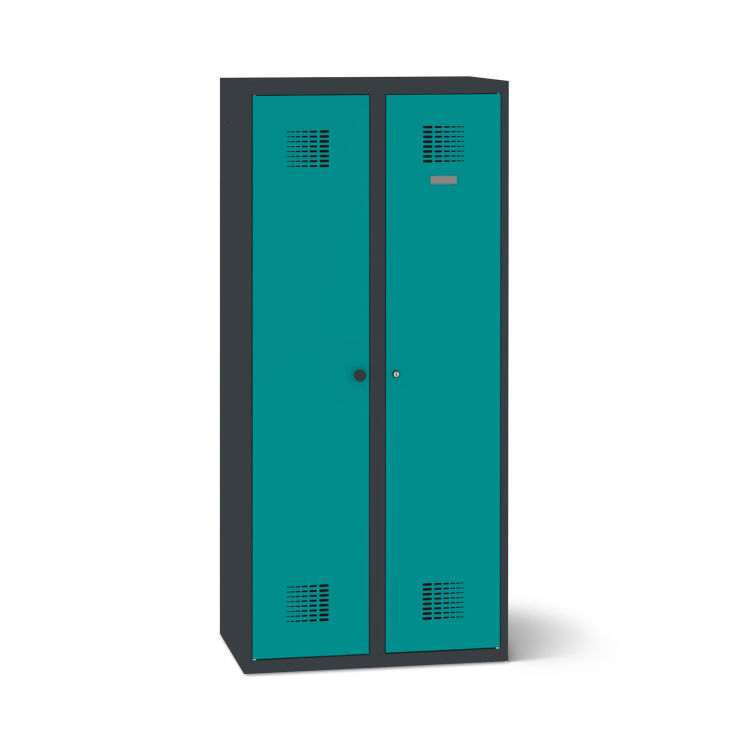 Mit dem Doppelspind von rotstahl® können Sie die Trennung von Privat- und Arbeitskleidung Ihrer Mitarbeiter mühelos umsetzen. Jeder Benutzer hat Zugang zu zwei separaten Abteilen, die ausreichend Raum für lange Kleidungsstücke bieten. Ein Fachboden und eine robuste Kleiderstange mit verschiebbaren Haken ergänzen die geräumigen Abteile, deren Böden leicht gereinigt werden können.