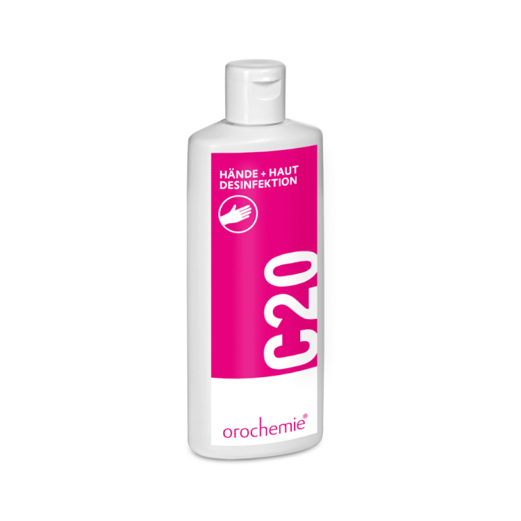 Das Orochemie C 20 Hände- & Hautdesinfektionsmittel ist ein schnell wirkendes, alkoholisches Einreibepräparat für die hygienische und chirurgische Händedesinfektion, im Lebensmittelbereich und in allen Bereichen, in denen ein hygienisch einwandfreier Zustand notwendig ist. C 20 ist auch für die Desinfektion der Haut vor einfachen Injektionen und Punktionen peripherer Gefäße, zur Hautdesinfektion vor Operationen und vor Punktionen von Gelenken, zur Desinfektion talgdrüsenreicher Haut sowie für Kühlumschläge und zur Desinfektion geeigneter Schutzhandschuhe geeignet.