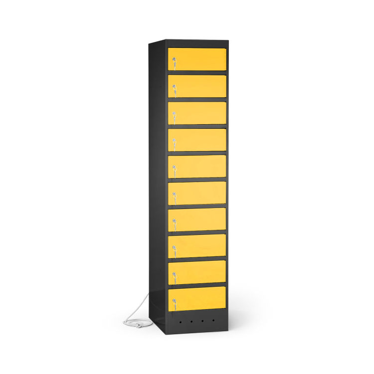 Hergestellt aus 1,0 mm starkem Stahlblech, ist er äußerst robust. Die Türen sind stabil an Metall-Drehbolzen befestigt und abgerundete Kanten machen ihn verletzungssicher. Mit einer 110°-Öffnung sind die Türen leicht zugänglich. Der Laptopschrank ist in verschiedenen Farben erhältlich. Ein perfekter Ort, um Laptops sicher aufzubewahren und gleichzeitig aufzuladen, ohne Kompromisse bei der Qualität einzugehen.