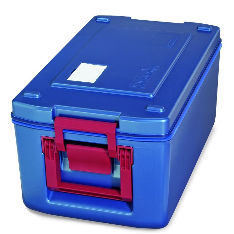 Standardmodell. Inkl. zwei ausklappbaren Tragegriffen. Außenmaße cm (L x B): 63,0 x 37,0 x 31,0. Innenmaße cm (L x B x H): 51,0 x 30,0 x 20,0 . Sie erhalten ein solides und langlebiges Profiequipment mit entsprechenden Konformitätserklärungen auf Nachfrage.. Mit den Hartkunststoffboxen aus der Serie blu’box den Transport temperaturkritischer Lebensmittel und Speisen perfekt organisieren! Die Boxen werden hochwertig aus Polypropylen (PP) gefertigt und wirken bereits auf den ersten Blick durch ihre frische blaue Außenfarbe. Im Material eingebrachte Metallionen wirken bakterienhemmend und vermindern deutlich die Geruchsbildung. Die blu'Boxen sind für einen Temperaturbereich von -20°C bis +100°C konzipiert und erlauben eine passive oder aktive Temperaturregulierung (separat erhältlich).
