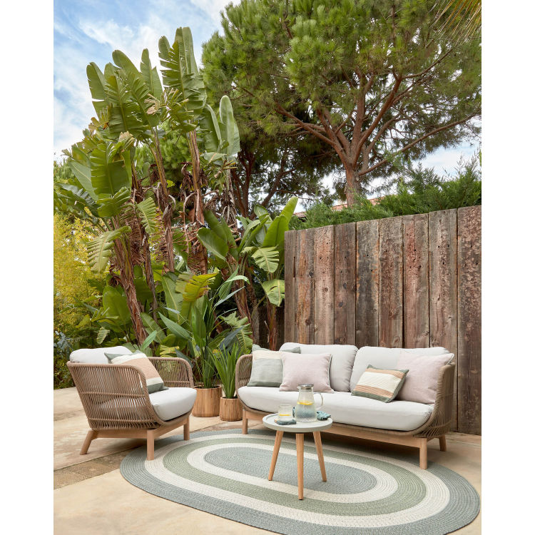Catalina bringt ein Tropical Feeling in Deine überdachten Außenbereiche. Es besticht durch Design, seine Holzstruktur aus nachhaltigem massivem Akazienholz und sein handgeflochtenes Seil, beide UV-beständig. Sieht Drinnen und Draußen toll aus.
