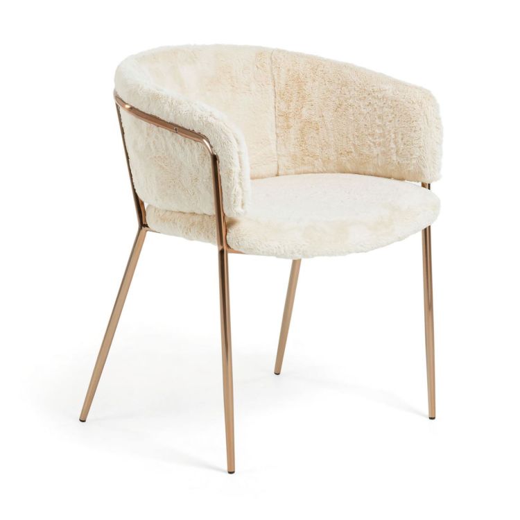 Der Stuhl Runnie kombiniert das beste Design mit einem völlig erneuerten urbanen Stil. Fell und Stahl in Kupfer, der neueste Trend, um die maximale Entspannung zu bekommen und das Muss deines Esszimmers zu sein.