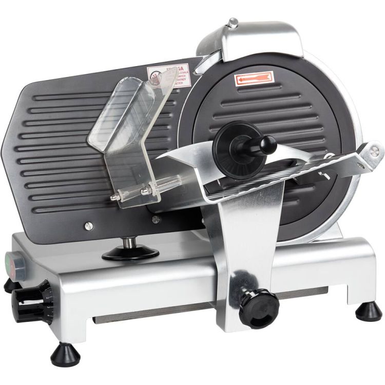 Die Aufschnittmaschine aus eloxiertem Aluminium ist hochwertig und sorgfältig verarbeitet für eine lange Lebensdauer. Damit schneiden Sie problemlos verschiedene, nicht gefrorene Produkte in bis zu 12 mm dicke, präzise Scheiben.