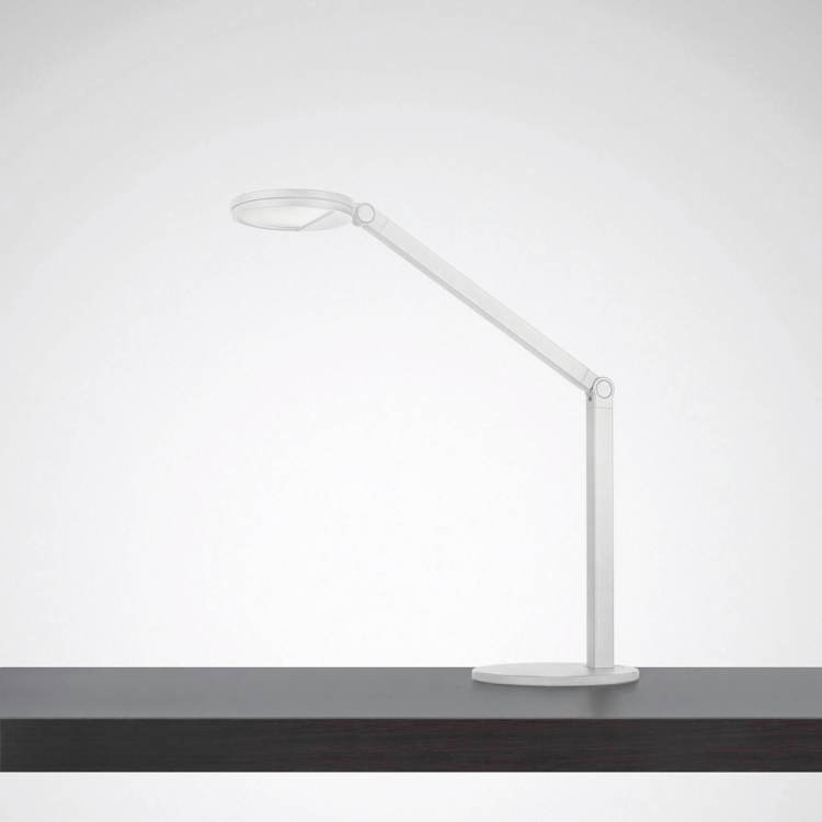 Kompakte Tischleuchte mit einem flachen, runden Leuchtenkopf, drei Justiergelenken und Standfuß. Mit integriertem Lichtmanagementsystem zur Unterstützung der Lichtwirkung des natürlichen Tag-Nacht-Rhythmus auf den menschlichen Organismus. Die Steuerung kann mittels App oder manuell über die Bedienelemente am Leuchtenkopf erfolgen. Mit Smart-Connect-Ausstattung zur Kombination mit einem LiveLink Lightgrid Controller. Geeignet zur Beleuchtung einer Fläche RF3 nach DIN 5035-8 mit bis zu 500lx ohne Zusatzbeleuchtung. In Verbindung mit Allgemeinbeleuchtung (500lx) werden für bürospezifische Sehaufgaben modifizierte Beleuchtungsstärken nach DIN EN 12464-1:2021 von bis zu 1000lx auf der Fläche RF3 erreicht. Deckenleuchten mit optionaler Lightgrid-Ausstattung können mit der Tischleuchte zur Synchronisation der Lichtfarbe vernetzt werden. Mit Bodenplatte zum Aufstellen auf eine plane Oberfläche. Die Bodenplatte ist zum Schutz der Standfläche vollflächig mit Filz unterfüttert. Das Vertikalgelenk am Leuchtenfuß ermöglicht eine Drehung des Leuchtenkopfes um 120°. Mit prismierter Abdeckung für optimale Lichtverteilung. Mit direkter, asymmetrisch breit strahlender Lichtstärkeverteilung. Blendungsbewertung nach UGR-Einstufung (EN 12464-1) 90. Mittlere Bemessungslebensdauer L80(tq 25 °C) = 50.000 h. Die Lichtquelle ist entsprechend der Ökodesign-Anforderungen (VO (EU) 2019/2020) austauschbar. Leuchtenkörper aus Aluminium-Druckguss. Oberfläche feinstruktur-pulverbeschichtet, Farbe weiß. (RAL 9016). Maße der Bodenplatte: Ø 190 mm x 10 mm. Maße Leuchtenkopf Ø 134 mm x 23 mm, Leuchtenhöhe (stufenlos einstellbar) 390 mm - 715 mm. Schutzklasse (EN 61140): II, Schutzart (DIN EN 60529): IP20, Stoßfestigkeitsgrad nach IEC 62262: IK02, Prüftemperatur Glühdrahttest gemäß IEC 60695-2-11: 650 °C. Gewicht: 2,8 kg. Das Steckernetzteil (Euro-Anschlusstecker Typ C, EN 50075) ist mit einer Anschlussleitung und Kupplung zur Verbindung mit der Leuchtenleitung ausgestattet. Die Leitungsführung erfolgt komplett innerhalb des Leuchtenkörpers, die Anschlussleitung wird über eine Kunststoffverklemmung sicher ausgeführt. Die rückseitig ausgeführte Anschlussleitung (1500 mm) wird mittels Steckverbindung mit der Anschlussleitung des Netzteils (1500 mm) verbunden. Die Gesamtleitungslänge des Anschlusses beträgt 3000 mm. Mit elektronischem Betriebsgerät, dimmbar (integriert). Das Betriebsgerät ist entsprechend der Ökodesign-Anforderungen (VO (EU) 2019/2020) austauschbar. Mit integriertem Steuergerät zur tages- und jahreszeitzeitabhängigen Steuerung der Lichtfarbe (Circadian-Steuerung). Bedienung über 2 Taster (Ein/Aus/Helligkeit/Lichtfarbe/HCL Kurve). Das Produkt erfüllt die grundlegenden Anforderungen der anwendbaren EU-Richtlinien und des Produktsicherheitsgesetzes und trägt die CE-Kennzeichnung.