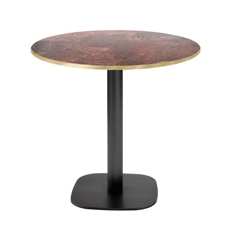 • Tischplatte aus laminierter Spanplatte mit messingfarbenen Kanten