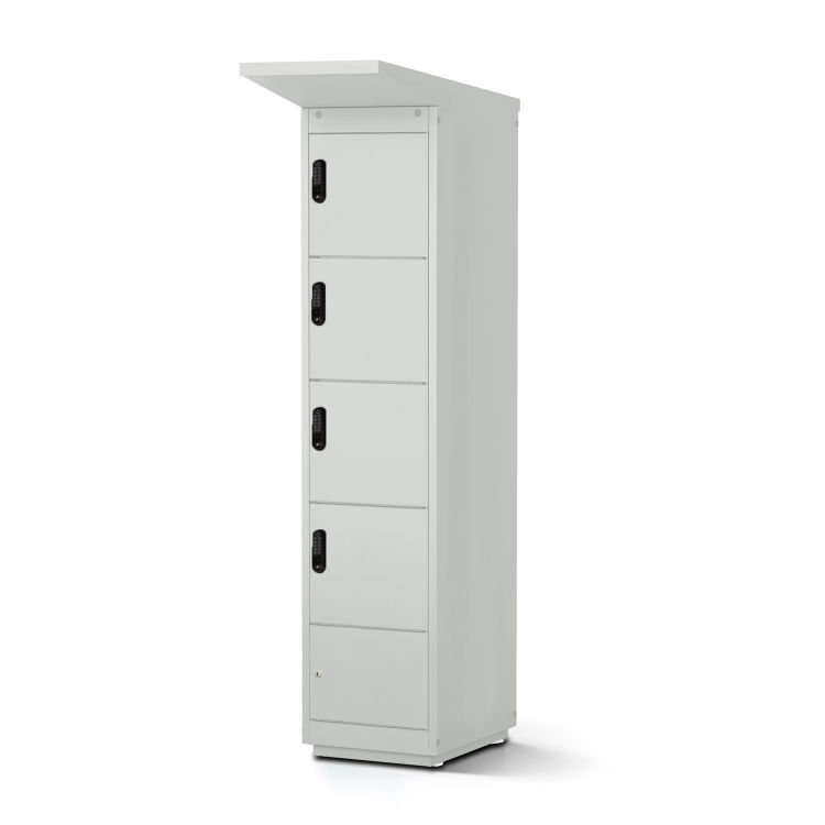 E-Bike-Ladestation lichtgrauer Korpus mit 4 Fächern mit Münzpfandschloss