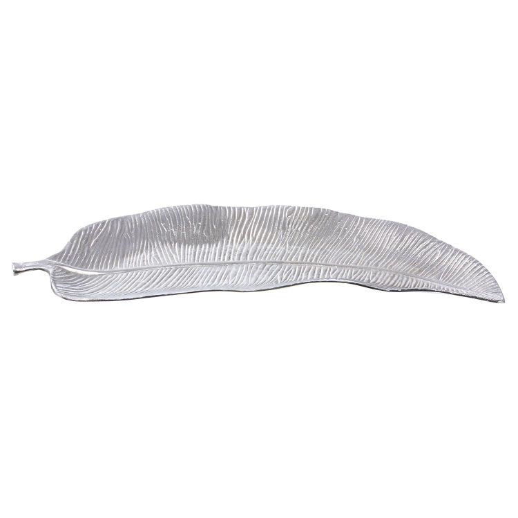 Schale, Blatt, "XL Leaf", Aluminium, silberfarben, VE 1, L. 32 cm, B. 97 cm, H. 5 cm, Filzgleiter; Nicht geeignet für Lebensmittel