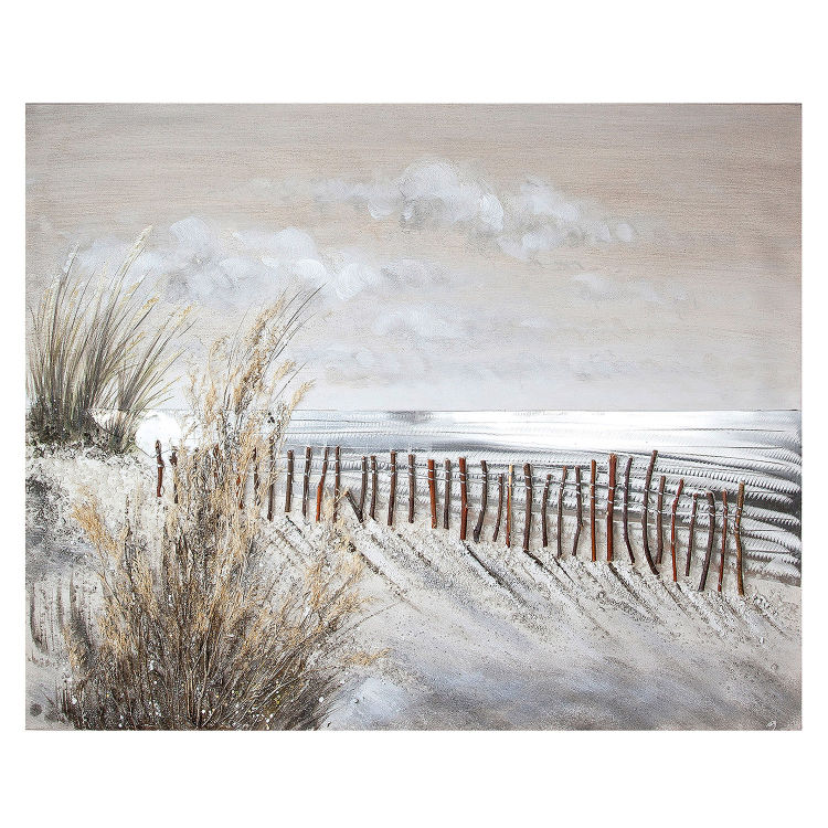 Die meisten Menschen lieben das Meer, erinnern sich an einen tollen Aufenthalt am Strand oder träumen von der nächsten Reise an die Küste. Dieses Gefühl stellt das Bild Dünenzauber dar. Das hochwertige Gemälde mit einer Höhe von 80 cm und einer Breite von 100 cm ist eine Leinwand und hat Elemente mit dreidimensionaler Wirkung: Zaun, Gras und Sand werden aufgetragen und von Hand übermalt. So entsteht ein einmaliges Objekt, welches Ihren Wohnraum erstrahlen lässt. Das Bild Dünenzauber passt aufgrund der hellen Farbgebung zu jedem Einrichtungsstil und inspiriert durch seinen einzigartigen 3D Effekt., handbemalt