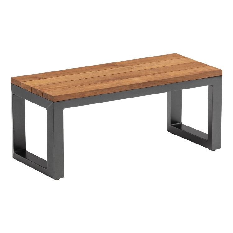 City-Line konzepiert für schmale Balkone und kleine Flächen. Beistelltisch aus Aluminium mit Tischplatte aus 100% FSC®- zertifiziertem Teak-Holz.