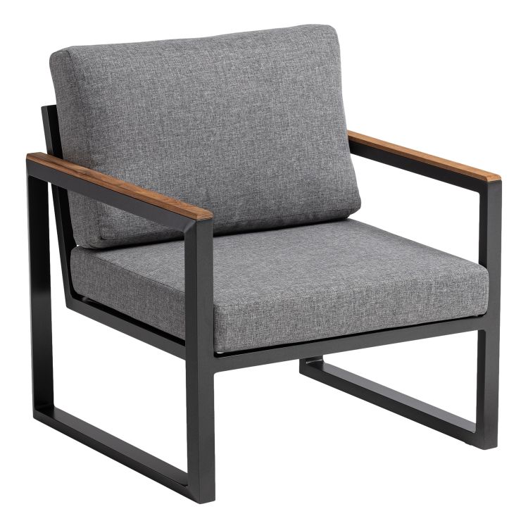 OCEAN SKID besticht durch ihre variable Gestaltung, bei der jeder seine passende Variante erhält.Solides, formschönes Aluminium-Gestell mit Armlehnen aus Aluminium oder Onlay-Armlehne aus 100% FSC®- zertifiziertem Teak-Holz, kombiniert mit hellgrau-melierten Sitz- und Rückenkissen aus UV-beständigem Olefin-Stoff.