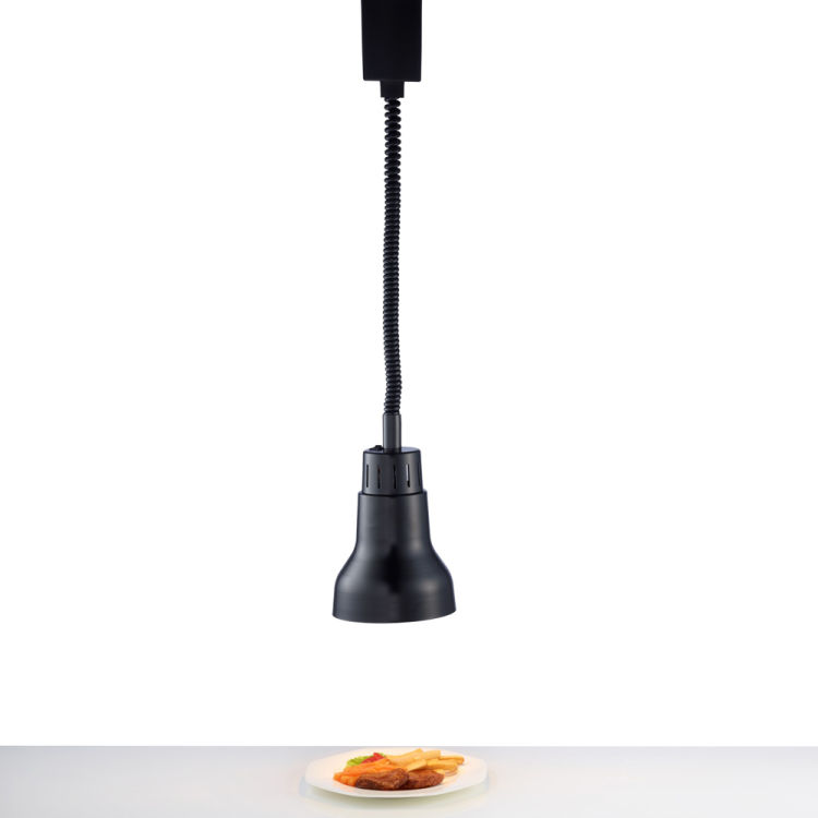 Lampengehäuse Aluminium. Dekor Durchmesser 170 mm. Mit Spiralkabel, stufenlos verstellbar von 850 - 1700 mm. Komplett mit 250W-Infrarotbirne (WEISSLICHT). E-Anschluß: 230V/250W.