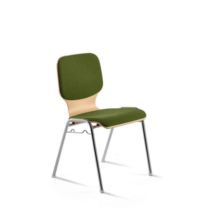 Gestell Chrom, buchefarbig, Sitz und Rücken gepolstert, inkl. Reihenverbinder, stapelbar (max. 10 Stühle), Sitzhöhe 46 cm. Hochleistungsfähiger und umweltfreundlicher Strickstoff (aus recyceltem post-consumer-Polyester aus PET-Flaschen), OEKO-TEX® Standard 100, Scheuertouren nach Martindale: 100.000, Flammschutz: UNI 9175 Class 1 IM, EN 1021-1 & 2 (Zigaretten- & Streichholztest), CRIB 5, BS 7176 Class Medium Hazard, California TB 117-2013, Lichtechtheit: 6, Reibechtheit: 4/5.