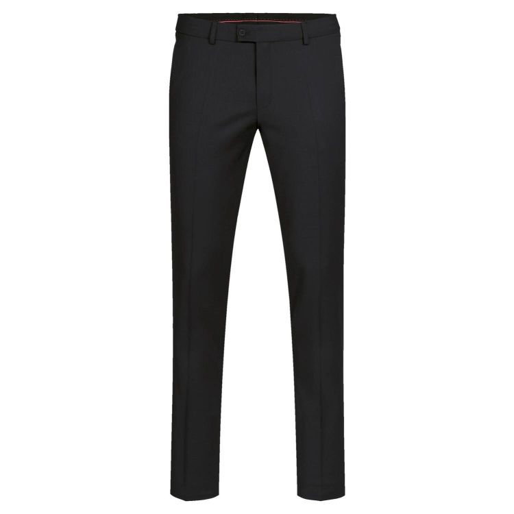 niedrige Leibhöhe, elastischer Bund, 2 Seitentaschen, 2 Gesäßleistentaschen, Vorderhosenfutter, 52 % Polyester, 46 % Schurwolle, 2 % Elasthan